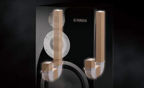Suppressing unnecessary acoustic radiation from the back surfaces of the tweeter and the midrange has been a challenge to many speaker engineers. They have taken a variety of approaches to addressing the challenge, including adding a small back chamber packed with sound absorbing materials. However, almost all conventional methods required a large amount of sound-absorbing materials to eliminate strong resonance inside the chamber. With the NS-5000, we have taken a radically different approach; we equipped the backs of the 100% ZYLON® 8 cm (3-1/4”) midrange and 3 cm (1-1/4”) tweeter with the newly developed R.S. Chambers (patent pending). Each of the R.S. Chambers uses two resonance tubes of different lengths to cancel out the resonance peak produced in the main chamber in the middle, thus eliminating the need for sound-absorbing materials inside the chamber that would degrade the sound. The result is that each driver can retain its native flat frequency characteristics and that delicate nuances of music can be reproduced with exceptional detail and articulation.