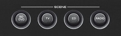 D’une simple pression sur l’un des boutons SCENE, l’appareil s’allume, sélectionne automatiquement la source d’entrée et lui attribue le mode DSP optimal. Vous pouvez les reprogrammer en choisissant une source et un mode DSP, puis en maintenant un bouton SCENE appuyé pendant au moins trois secondes.