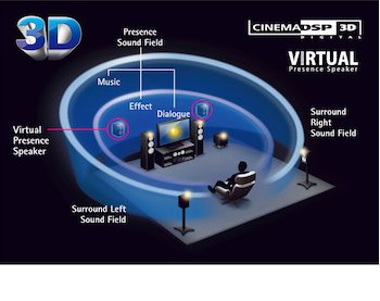 Cette technologie permet d’ajouter des effets sonores DSP. Découvrez grâce à la fonction « Virtual Presence Speaker » le nouveau mode audio CinemaDSP3D activable avec seulement 5 enceintes, contrairement à d’autres technologies qui nécessitent 7 enceintes au minimum. Donnez de la hauteur à votre son, sans encombrer davantage votre pièce.
