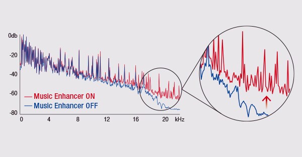 Lorsque la musique est encodée dans un format compressé numériquement comme le MP3, la réponse en fréquence en souffre. Le Compressed Music Enhancer de Yamaha utilise un traitement de signal numérique sophistiqué faisant appel à des algorithmes exclusifs pour restaurer ce qui a été perdu, de sorte que la musique soit toujours perçue comme elle le devrait.