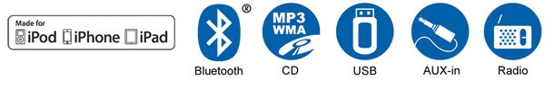 - Compatibles avec de nombreuses sources : CD, iPod/iPhone, iPad (via USB), USB, radio et entrée Auxiliaire Jack