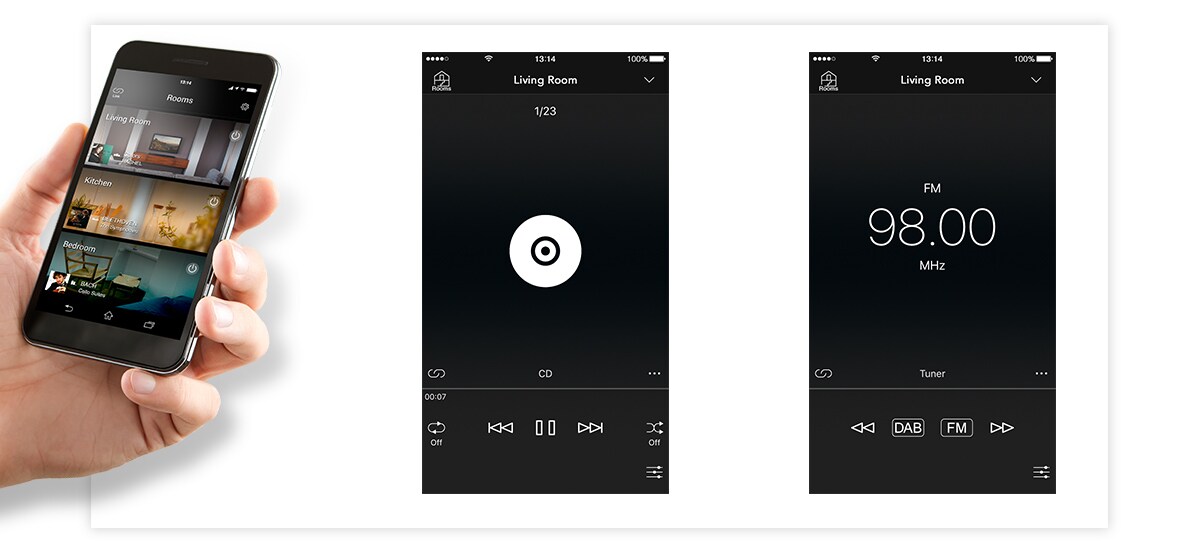 Touchez simplement l’interface ergonomique et contrôlez tout l’équipement audio et la musique chez vous.