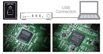 L’appareil comprend un DAC USB de qualité exceptionnelle, capable de reproduire les sources haute-définition sans pertes. Il est compatible avec le format DSD 5,6 MHz (DSD128) ou 384 kHz/32-bit, lequel enregistre la musique avec un niveau de détail extraordinaire grâce à une fréquence d'échantillonnage de 5,6 Mhz. Le convertisseur Numérique/Analogique est un modèle SABRE 32 (ES9010K2M), 32-bit (2-canaux) de la société américaine ESS Technology. Son circuit intégré USB est le tout dernier produit du fabricant de semi-conducteurs XMS. En limitant les interférences grâce à la transmission asynchrone, il permet une restitution acoustique de qualité optimale.