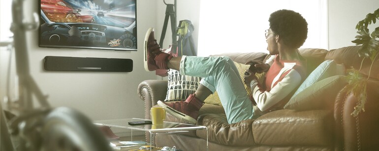 Profitez d'un son 3D surround inégalé grâce à la compatibilité DTS Virtual:X*. Cette barre vous procure à elle seule un son qui semble venir du plafond, comme le bruit de la pluie ou d'un vaisseau spatial. Plongez dans l'univers immersif remarquable de vos films, concerts et jeux vidéo préférés, comme si vous y étiez !