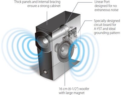 Le caisson de basse dispose d’un haut-parleur de 16 cm et profite de la toute dernière technologie Yamaha Advanced YST pour produire des basses puissantes et claires. Les circuits sont disposés selon un schéma optimisé pour la bonne circulation de l’alimentation. Le Linear Port améliore la dissipation sonore et est conçu pour minimiser les bruits indésirables. Les effets sonores et musiques sont produits avec une présence rarement atteinte.