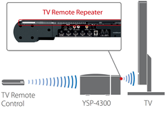 Même si l’YSP-4300 est place devant le récepteur de télécommande de votre TV, le TV Remote Repeater situé à l’arrière du projecteur de son assurera le relais vers votre écran pour qu’aucun signal ne soit perdu.