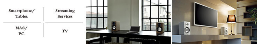 Aujourd’hui, le niveau d’exigence des consommateurs n'a jamais été aussi élevé, et la qualité de la reproduction audio doit être optimale peu importe la source. Cela tombe bien, ces enceintes procurent un plaisir d’écoute inédit. L'amplificateur analogique intégré permet d’apprécier pleinement les sources haute résolution gérées à travers un DAC USB ultra-performant. Et les compatibilités Bluetooth® ou WiFi, entre autres protocoles réseau, sont de la partie. Libérez le son et faites de votre ordinateur ou de votre téléviseur un second système HiFi. Vos oreilles ont appris à faire la différence, alors donnez leur ce qu’elles attendent.