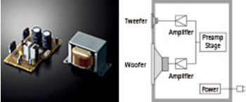 Essentiel pour des enceintes actives, l’amplificateur de puissance est de type analogique discret. Il restitue un son large et puissant grâce à une configuration bi-amplifiée, avec 45 W pour le woofer et 25 W pour le tweeter. En contrôlant chaque haut-parleur individuellement, il produit un son puissant tout en maintenant un ratio signal-bruit élevé.