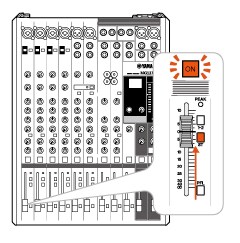 (1) Set the mixer's GAIN, fader, and the volume levels of the power amplifier to minimum.