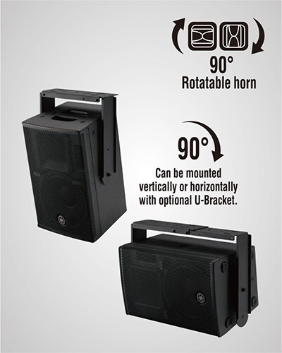 The 10" models are equipped with rotating HF horns and compatible with an optional UB-DXRDHR10 U-bracket for use in fixed installations and utility, while the 12" models are the first Yamaha speakers to feature a coaxial compression driver for improved clarity and smoother frequency response for floor monitoring. The largest in the lineup are the 15" models, which feature dual-angle pole sockets and rigging points for use in fixed installations or as temporary main speakers for sound reinforcement.