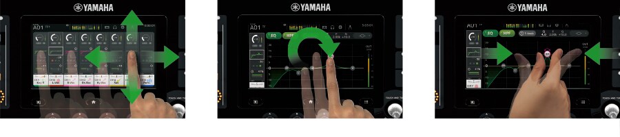 Lors du développement de la Série TF, les ingénieurs de chez Yamaha sont partis des interfaces utilisées sur leur consoles haut de gamme, en ajoutant un contrôle intuitif optimisé pour l’utilisation de panneaux tactiles – un outil désormais familier dans bien des applications. L’interface innovante des consoles de la Série TF permettent d’effectuer la plupart des opérations par l’intermédiaire du panneau tactile seulement ; elle deviendra rapidement une seconde nature pour un grand nombre d’utilisateurs. Que vous ayez déjà travaillé sur des consoles numériques Yamaha, ou uniquement sur d’autres marques, voire sur des consoles analogiques, ou encore jamais utilisé de console du tout, les TF vous apporteront les résultats désirés rapidement et efficacement, grâce à un workflow efficace et facile. Les contrôles physiques disposés autour du panneau tactile apportent encore davantage de polyvalence et de précision.
