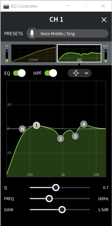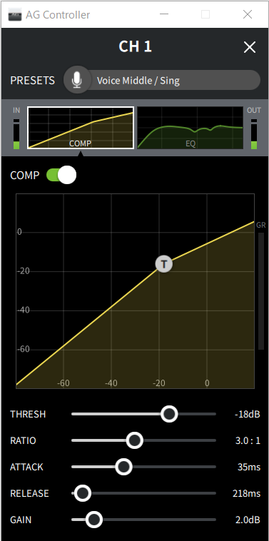 AG Controller is a software application that allows you to control the DSP functions of the AG03MK2, AG06MK2, AG03, AG06, and AG01 from your Windows / Mac / iOS device via USB connection