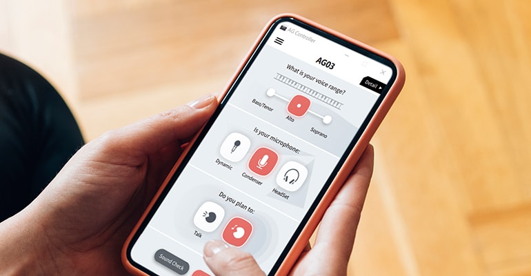 "Simple" mode utilizes an intuitive interface for optimizing tone to music or speech, gain levels, and reverb. "Detail" mode gives users more precise control over of each DSP effect.