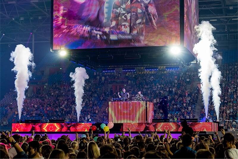 Each year the GelreDome - home of Dutch football club Vitesse Arnhem - is transformed into a huge centre of Christian worship by the EO-Jongerendag (Evangelical Broadcasting Youth Day) event. With 25,000 young people enjoying a range of Christian music and sermons in a huge ‘in the round’ production, two Yamaha RIVAGE PM10 digital mixing systems ensured that the message was clearly heard.