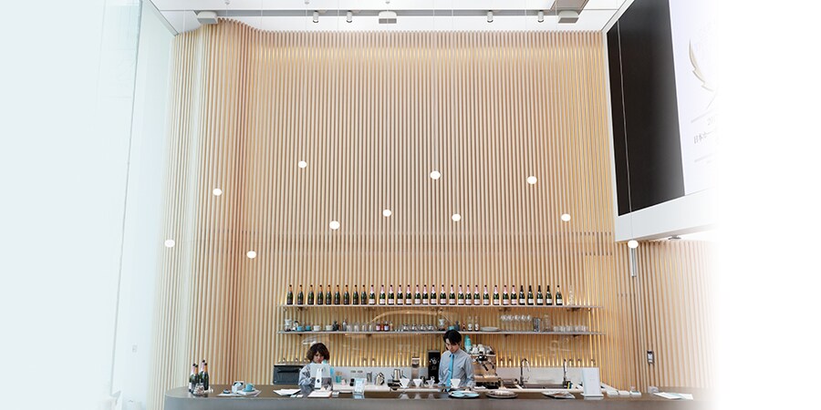 The fact that Volvo Studio Aoyama includes a café and bar also separates it from standard car showrooms. The café operates until 6 PM, and then it becomes a champagne bar. The café serves coffee produced in collaboration with Kanno Coffee that has been carefully blended to suit Japanese taste. We also serve traditional Swedish “semla” sweet rolls.