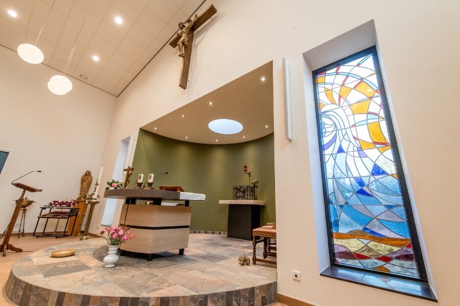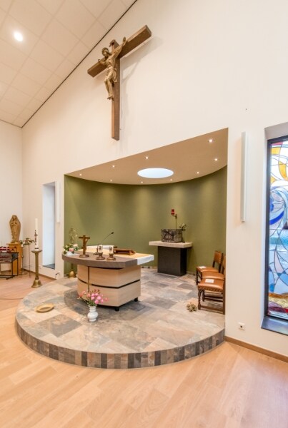 Located a few minutes’ drive from the city of Venray, a significant decline in the number of regular worshippers at Vredepeel’s Catholic church meant that it had become too large. At the same time, the local community centre needed major work. Residents came up with the idea of incorporating the community centre into the church building, which would host all of the village’s social activities in one place, including worship, activity groups, meetings, events and the village pub/restaurant. The church and local authorities agreed, and De Kleine Loef (The Small Loaf) was born.
