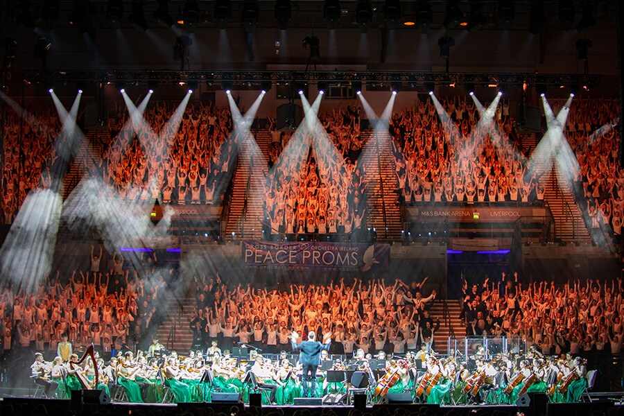 One of Steve’s biggest challenges is mixing an annual tour with the Cross Border Orchestra Ireland (CBOI), a not-for-profit orchestra for 12-24 year olds which provides performance opportunities and high quality musical training. The annual Peace Proms tour is an arena-sized production featuring the orchestra and a choir of up to 5,000 members.