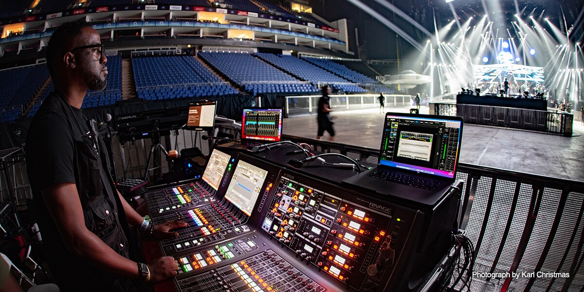 Monitor engineer Duriel Mensah checks the onstage sound with StageMix
