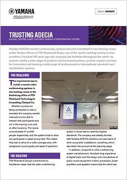 • TÜV Rheinland Trusts Adecia: Global Testing Giant Installs Yamaha Conferencing Systems