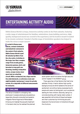 Nikito Domus World is a large, immersive activity centre in the Paris suburbs, featuring a wide range of entertainment for families, celebrations, team building and more. High quality, background sound was crucial to the experience, but its location meant it needed to be closely contained. Yamaha’s flexible range of installation speakers has helped to make the venue a major success.