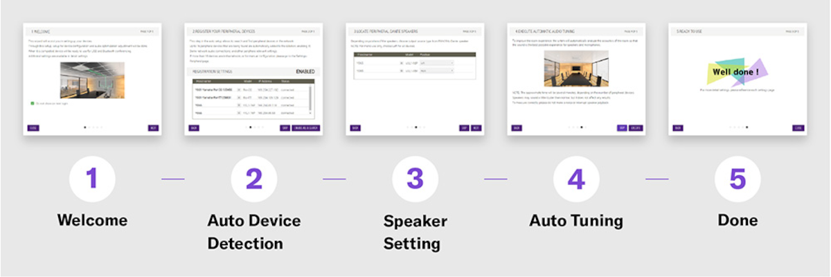 Optimisez les paramètres sonores pour l'environnement de votre pièce en un clin d'oeil grâce à l'auto-détection et à l'auto-configuration des composants. Le système peut également être contrôlé à distance via une interface utilisateur Web.
