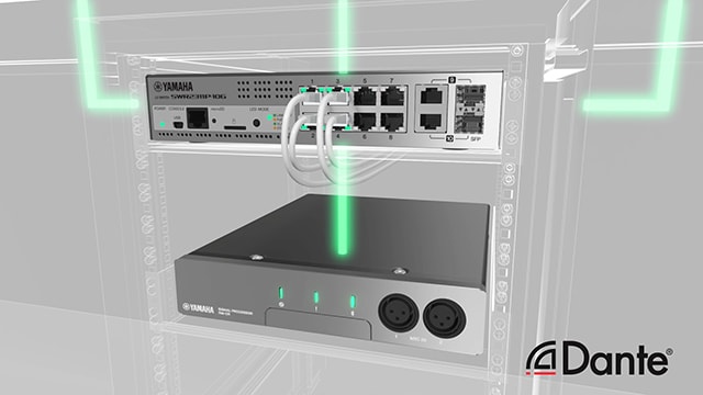 Les signaux audio et de contrôle peuvent être transmis avec un seul câble réseau en utilisant le standard Dante. Cela résout les problèmes de câblage et d'installation. En outre, dans un environnement où la disposition des salles de téléconférences et le nombre de participants fluctuent, les microphones sans fil vous libèrent de la contrainte de rester dans une position donnée en raison d'un câblage préinstallé. Cette flexibilité peut même aller plus loin grâce à la possibilité d'utiliser jusqu'à 16 microphones simultanément dans un même système sans fil.