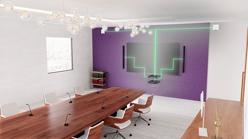 Plus besoin de se préoccuper du câblage lorsque la disposition de la salle est modifiée pour s'adapter aux applications telles que les discussions, les séminaires ou les formations. Vous pouvez choisir entre deux types de microphones, col de cygne et microphone de table, afin de créer l'espace de téléconférence le plus confortable en fonction de votre utilisation.