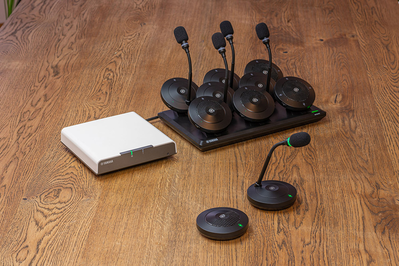 La série RM-W est composée de quatre microphones sans fil : deux modèles de surface (le RM-WOM omnidirectionnel et le RM-WDR directionnel cardioïde) et deux versions à col de cygne (le RM-WGL avec col de cygne de 30cm et le RM-WGS avec col de cygne de 15cm). Les microphones fonctionnent avec le point d'accès sans fil à huit canaux RM-WAP-8, qui dispose d'un contrôle Dante et d'une alimentation PoE fournie par un seul câble réseau. La solution ADECIA sans fil utilise la norme DECT (Digital Enhanced Cordless Telecommunications) et la bande de fréquence de 1,9 GHz, ce qui réduit les risques de conflits de bande passante et rend la communication stable et claire.