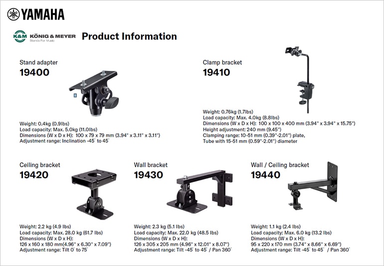 Fondée en 1949, la société König & Meyer est l'un des principaux fabricants mondiaux de supports pour microphones, enceintes et instruments de musique. Elle propose une large gamme de produits durables et de haute qualité, parfaitement adaptés au matériel Yamaha.