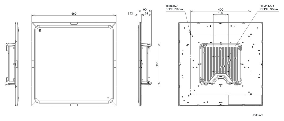 General | Dimensions | W560 mm × D560 mm × H90 mm (Includes protrusion/microphone panel: 22 mm) | |