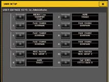 Les principaux paramètres de tranche sont assignés aux boutons situés à droite de l'écran pour un accès immédiat à tout moment. En plus des touches définies par l'utilisateur pour les paramètres qui peuvent être assignés librement, une autre caractéristique traditionnelle des consoles numériques Yamaha, les consoles QL sont aussi pourvues de boutons virtuels assignables à l'écran. En combinant ces deux moyens de contrôle, l'utilisateur peut améliorer considérablement la vitesse et l'efficacité des opérations de mixage.