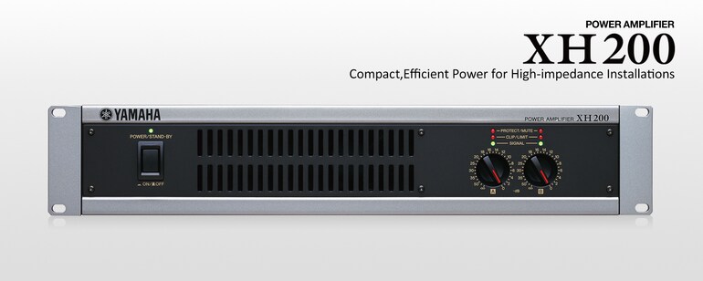 Le XH200 est un amplificateur pour lignes 100V (impédance de 48 ohms) ou 70V (impédance de 24 ohms). Il est recommandé dans les cas où un grand nombre de haut-parleurs doivent être raccordés en parallèle. L'alimentation à découpage de Yamaha permet d'avoir un amplificateur très compact et léger (10 kg).