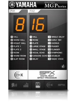 Cette page vous permet de sélectionner et de monitorer les programmes d'effets FX1 (REV-X) ou FX2 (SPX). Les paramètres détaillés de chaque programme peuvent être réglés sur des pages de programme dédiées.