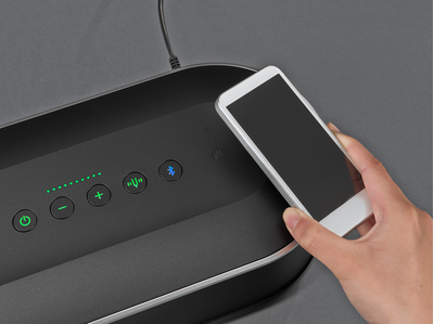 Connectez-vous simplement et facilement en plaçant un smartphone ou une tablette compatible NFC sur le logo NFC situé sur le dessus de l’unité de commande lorsque le bouton Bluetooth clignote*4.