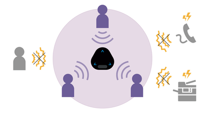 Problème : même à l’intérieur des murs virtuels d’une conversation dans un espace de travail ouvert, différents bruits environnants peuvent être captés. La sonnerie d’un téléphone, la saisie sur un clavier ou les bruits de papier peuvent être désagréables, en particulier pour les participants les plus éloignés.