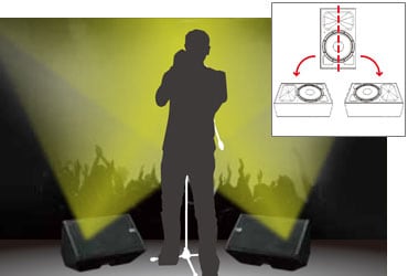 The DXR12 and DXR15's enclosure design enables mirror-mode monitor placement that creates a symmetrical sound field for the performer with a larger, more defined “sweet spot”. Used in either a balanced dual-mono configuration or a stereo monitor mix setup, mirror-mode floor monitoring can enhance your performance considerably.