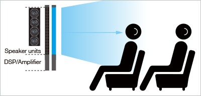 The VXL1-16P is equipped with 16 drivers. A line array configuration is used, placing the audio sources linearly to reduce sound dispersion in the vertical direction, thereby limiting reflections from the ceiling and walls, and preventing sound energy from being dispersed, ensuring that clear sound can be delivered to long distance. The drivers are 3.75 cm (1.5 inch) full-range units that extravagantly use neodymium magnets, and are placed in a slim enclosure (chassis) that is 5.4 cm wide. This allows easy installation even in locations that have various limitations on placement space, without impairing the décor of the office conference room.