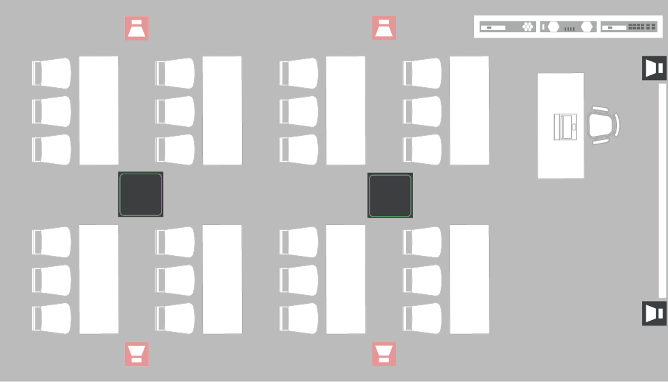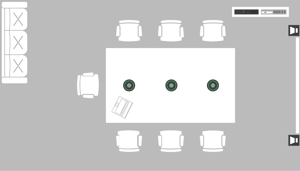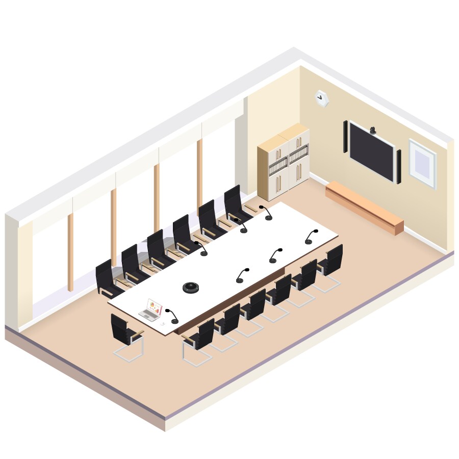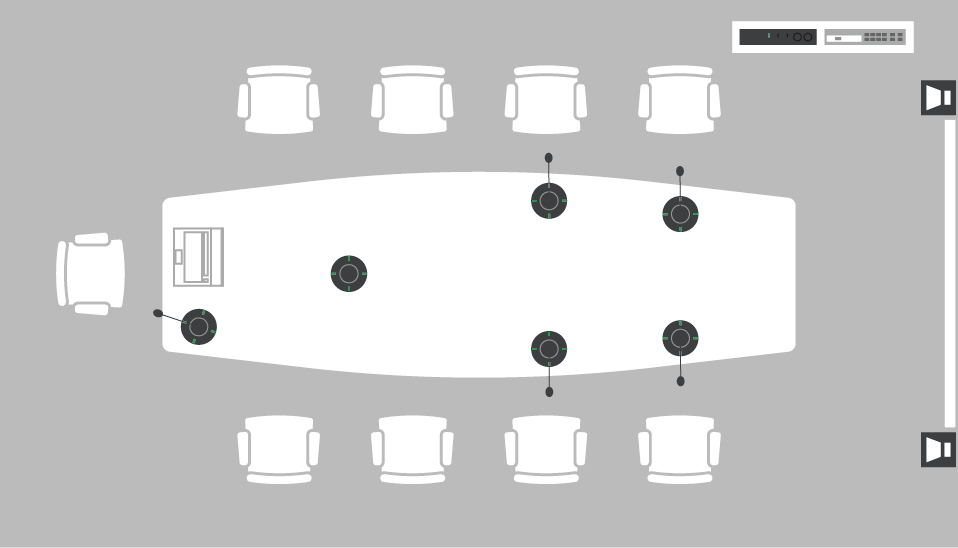 In smaller meeting rooms (up to 30m²) with fixed setups that rarely ever change, or in rooms with ceilings too low for a ceiling microphone, the ADECIA Tabletop solution is the best choice.