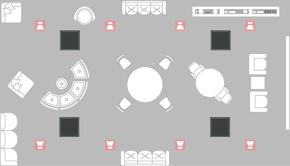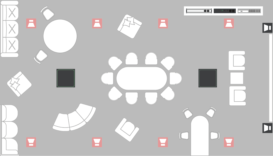 When you are using a large room (up to 150m²) Yamaha's advanced digital signal processing technologies can ensure a comfortable audio experience for everyone in attendance, providing consistent microphone and speaker performance regardless of where attendees are listening or speaking from within the space. Multiple RM-CG Ceiling Array Microphones quickly and reliably detect speakers in the room and can capture their voices authentically. Using the MRX-7D processor, the Microphones can be used for voice reinforcement, and everything can be easily controlled from a tablet interface using the ProVisionaire software.
