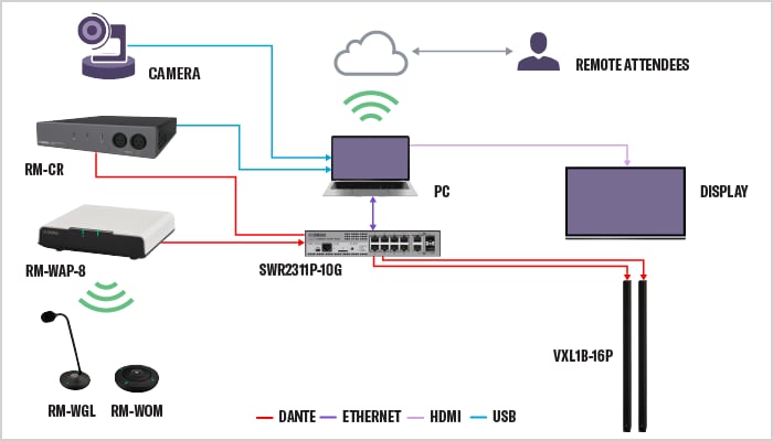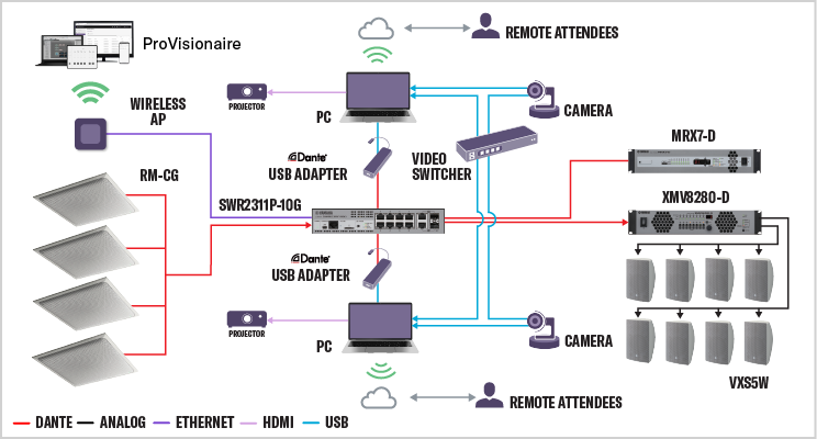 The RM-CR conference processor optimally matches all components to the room. Flexible speaker and amplifier combinations provide clear, transparent sound - providing a comfortable and authentic listening experience.