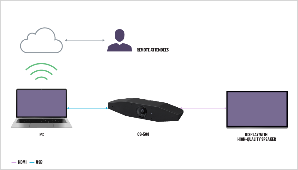 The CS-500’s unique SoundCap Eye feature tracks the position and speech of participants to properly pick up sound. Natural teleconferencing can be achieved even in open spaces and other noisy environments, when the person speaking is within a range of 3 meters from the microphone.