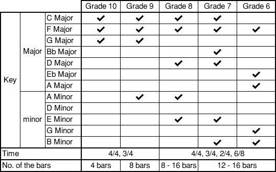 • If candidates choose a piece from inside the textbook, candidates are allowed to choose whether or not to play along with a backing track. The backing track will be prepared at the exam room.