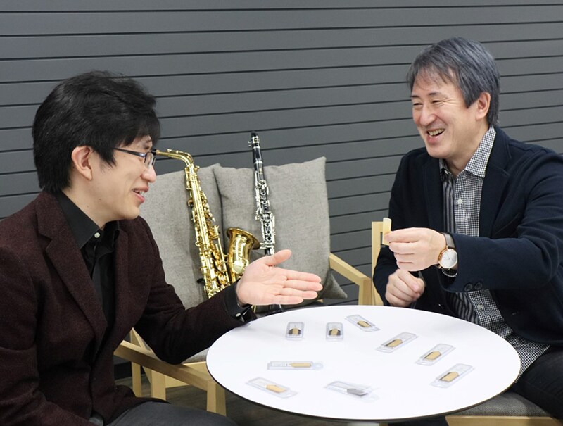 Takayasu : Il est évident qu'il ne sert à rien de créer une anche facile à jouer si sa qualité sonore est trop éloignée de celle d'une anche en roseau classique. En même temps, j'ai demandé à Toru d'explorer la possibilité d'obtenir une sensation et une jouabilité naturelles.