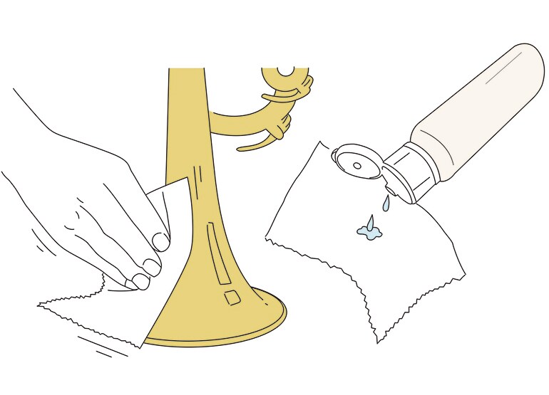 Appliquer une petite quantité sur une gaze de polissage ou un chiffon de polissage.