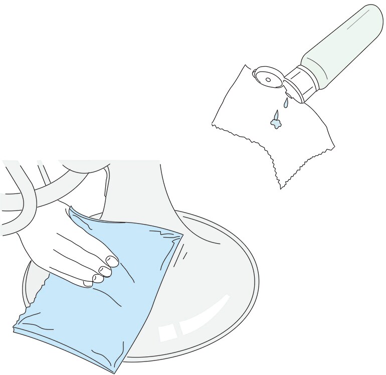 Appliquer une petite quantité sur une gaze de polissage ou un chiffon de polissage.