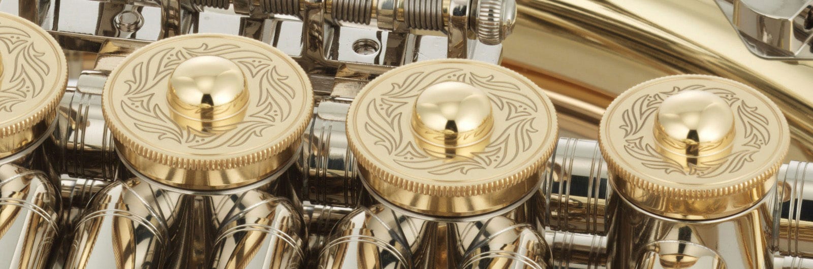 Les chambres à air de tous les diapasons sont en laiton doré pour souligner la clarté et la profondeur tonale de la corne. Le diapason principal a également une forme arrondie qui offre une résistance de soufflage idéale pour cette classe d’instrument. Le boîtier de la vanne est en nickel argent pour une réponse et une durabilité accrues.