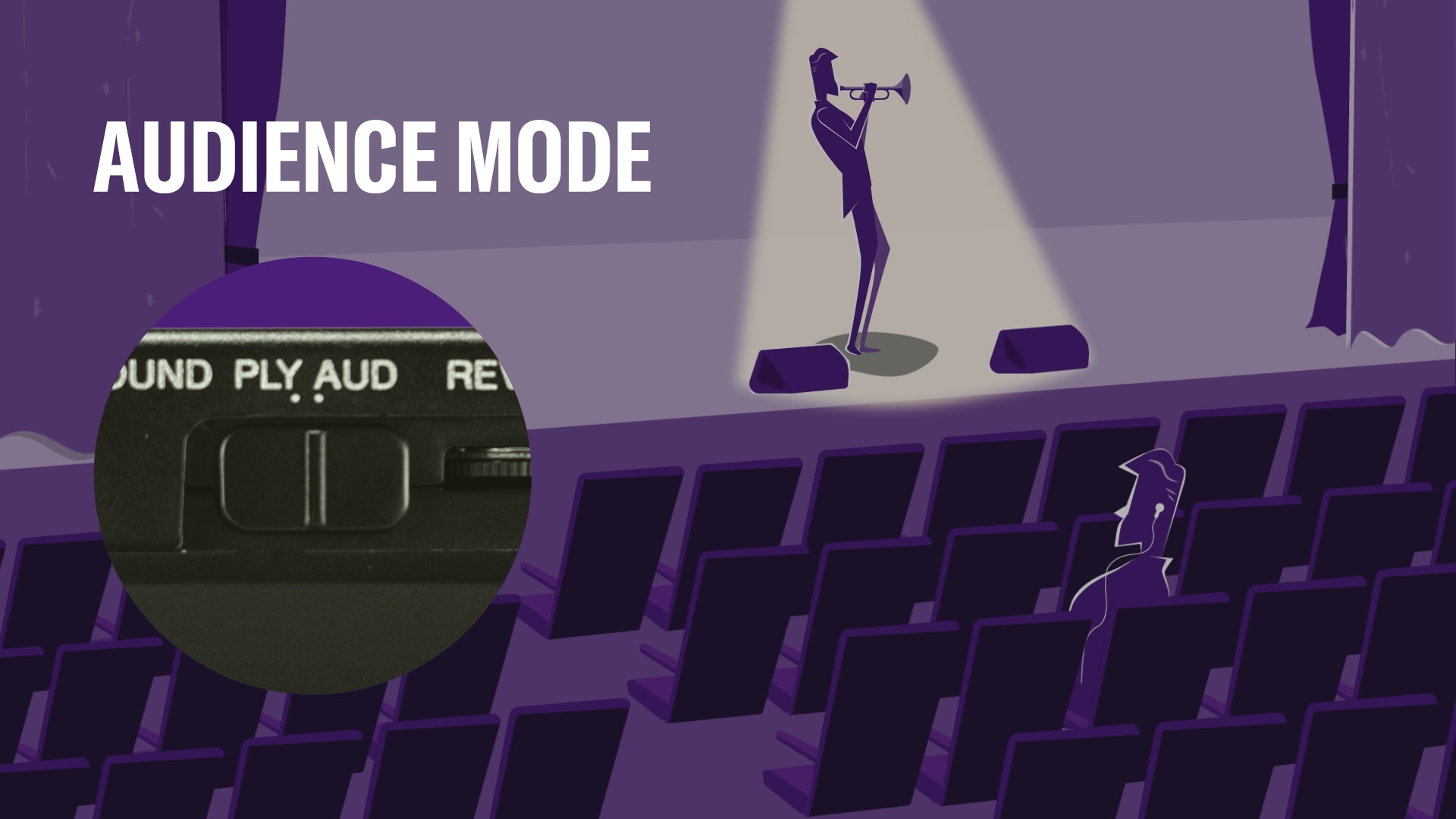 Le préampli Personal Studio™ STJ offre deux modes sonores. Le mode "Player" (PLY) permet au joueur d'entendre le son naturel de l'instrument, tandis que le mode "Audience" (AUD) délivre un son naturel à l'auditeur.