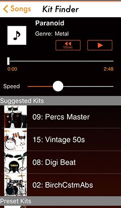 La fonction "Kit Finder" vous permet de jouer rapidement et facilement avec vos chansons préférées. Sélectionnez un morceau dans votre bibliothèque musicale via Kit Finder et ce dernier vous proposera un kit prédéfini adapté à ce morceau.