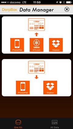 Le "Data Manager" vous permet de télécharger et d'installer de nouveaux kits utilisateur directement depuis YAMAHADTX.com. De plus, Data Manager vous permet de sauvegarder les données du DTX700 sur votre appareil iOS.