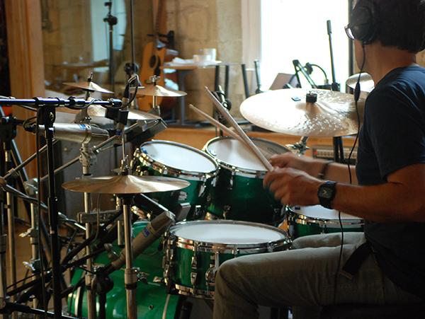 Une batterie pop acoustique contemporaine avec beaucoup d'attaque.